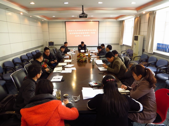 在党的十八届三中全会即将召开之际,郑州十九中党委根据《中共郑州市教育局委员会关于深入学习宣传贯彻习近平总书记系列重要讲话精神的通知》(郑教党明电〔2013〕13号)文件精神,研究部署学习任务,制定学习计划和方案,明确学习专题,通过报告会、研讨会、专题讲座等多种形式认真组织集体学习。学校党委明确学习专题,要求每个专题领学人要认真备课,在组织学习时认真领学,并将电子版传至学校网站党建专栏,供师生学习,同时党委中心组成员对每个专题要有学习笔记,并用学习成果指导学校教育教学工作。