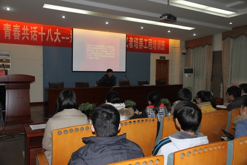在党课培训中,陈绍营书记结合高中学生学习生活实际,从三个方面与同学们共同学习:一是充分认识十八大报告的重大意义;二是十八大报告蕴含哪些新意;三是同学们如何结合自身实际学好十八大精神,立志做党和国家建设的栋梁之材。