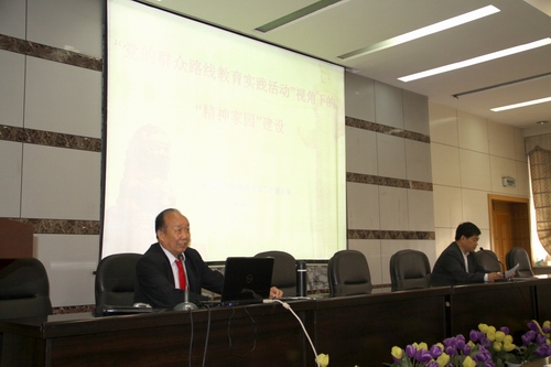 朱运河从复兴路、中国梦、党的群众路线、历史的交锋、精神家园建设等多个方面,把自己对党的教育实践活动的理解和“精神家园”建设方面取得的经验和体会进行了详细的解读。他指出我们在进行经济建设时,过于重视眼前的物质利益,忽略了心灵的文明与健康,导致美好的“精神家园”建设日益凸显;认为群众路线是党的生命线,是中国革命和建设反复印证的伟大创举,是党和人民事业的目的和希望所在,更是实现最广大人民根本利益的目的和归宿,我们应该毫不动摇地继承和发扬群众路线的优良传统;要求广大党员教师要有优秀的品德,做到学为人师、行为人范,用知识去铸就力量,用教育去改变人生,用生命诠释爱的含义,并勇于担当责任,无怨无悔的投身到教育事业中去。