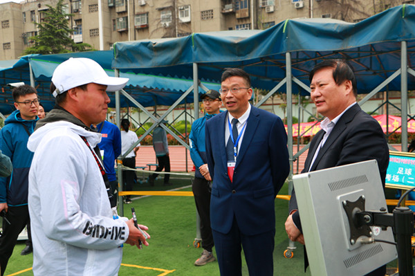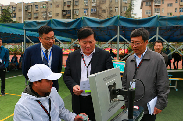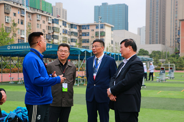 4月25日下午,郑州市教育局党组书记、局长王中立、郑州市教育局党组副书记、常务副局长刘鹏利、郑州市教育局副调研员王克杰、郑州市教育局体卫艺处处长高百中、郑州市教育局体卫艺处副处长白天、郑州市教育局体卫艺处体育专干仝永东一行莅临郑州市第十九中学,巡视2019年中招体育考试郑州市第十九中学考点的考务工作。该校党委书记、校长梁寅峰针对考点的考务安排及考场考试流程进行了详细汇报。