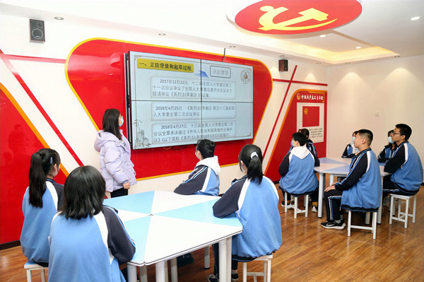 刘丹老师带领团员们一起学习《中华人民共和国英雄烈士保护法》