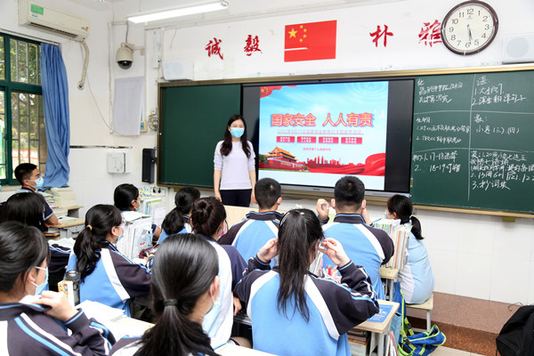 通过线上升旗仪式,学校宣传国家安全知识。