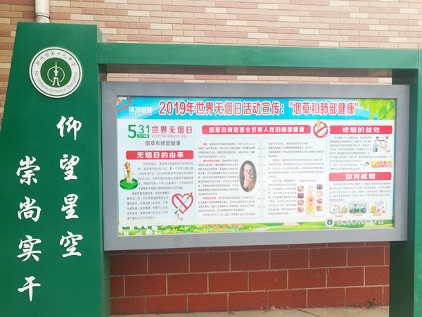 为全面推进健康校园创建工作,进一步提高中学生对烟草危害的认识,打造健康、无烟的校园环境,在第32个“世界无烟日”来临之际,郑州市第十九中学开展了系列控烟宣传教育活动。