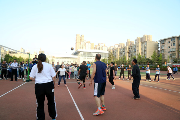 本次比赛分成行政组、高一、高二和高三组,实行六人制比赛,采取单循环积分赛制。首先进行比赛的是行政组和高一组,一声哨响之后,两支队伍展开了精彩的比拼。老师们各施绝技,发球、起跳、拦网、扣球,一个个精彩夺目的瞬间交迭呈现,一次次精彩的传球与得分引来欢呼阵阵,“加油、加油”的助威声铿锵有力,此起彼伏,队员们充分展示出个人精湛的技术和熟练的战术配合。每一场比赛既有扣人心弦的紧咬比分,也有不时闪现的轻松幽默,特别是趣味排球发球比赛环节,更是精彩不断,趣味连连,欢笑声、喝彩声声声入耳。最终,行政组获得本次排球比赛冠军。