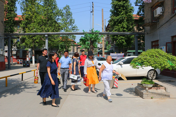 郑州19中党委副书记孙广兰(右一)和社区老人愉快交流