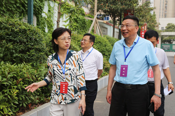 郑州19中党委书记、校长、主考梁寅峰向郑州市副市长孙晓红介绍考点组织情况