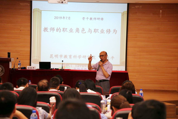 在培训期间,老师们先后聆听了云南师范大学杨永生教授的《人生智慧之树与创新型心智模式培养开发》、 昆明市中小学教师继续教育中心主任李保坤教授的《当代班主任的管理智慧》、昆明市教育科学研究院德育研究中心主任金改平老师的《教师的职业角色与职业修为》、昆明市教科院原院长饶又明老师的《课堂教学评价与质量提高》、云南大学国际关系专业博士生导师刘稚教授的《南亚、东南亚的地缘政治与经济》等专家教授的讲座,除了听讲座之外,老师们还参观了云南师范大学附属实验中学,与附中的老师们进行了亲切友好地交流座谈。