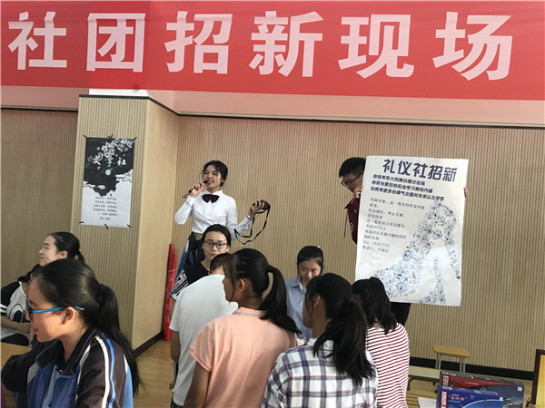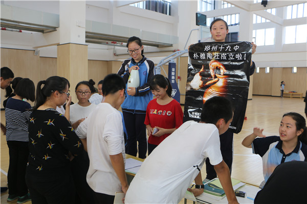 9月13日下午,郑州19中室内篮球馆沸腾了——该校每年一度的社团招新又拉开了序幕。各社团纷纷亮出“看家”本领,展开宣传攻势。五彩缤纷的海报、各具特色的社团表演无不让现场增添了一分亮色 。现场的同学也热情高涨,在各个社团宣传点间穿梭,或是认真阅读传单、或是详细咨询了解、或是饶有兴致观看展示、或是直接参与现场活动来选择心仪的社团。