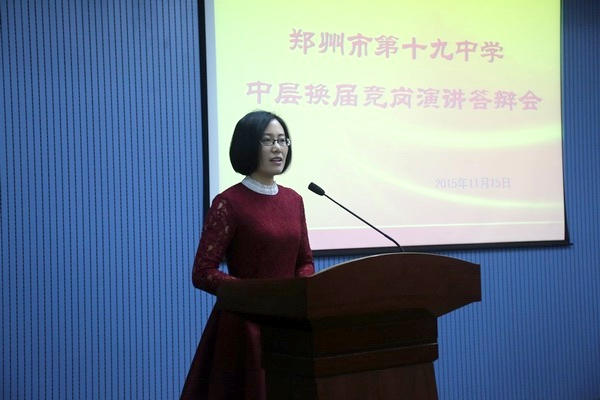 郑州19中高中部举行中层换届竞岗演讲答辩会