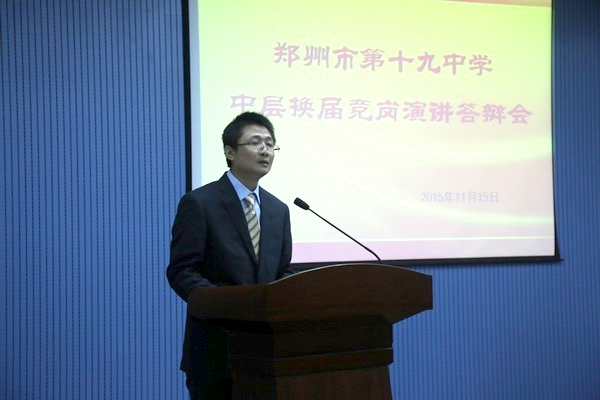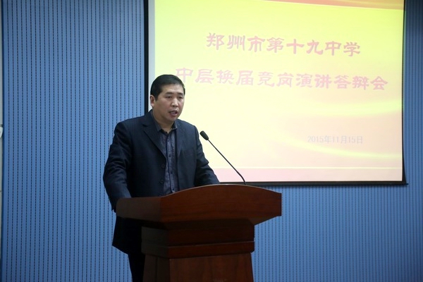 郑州19中初中部举行中层换届竞岗演讲答辩会