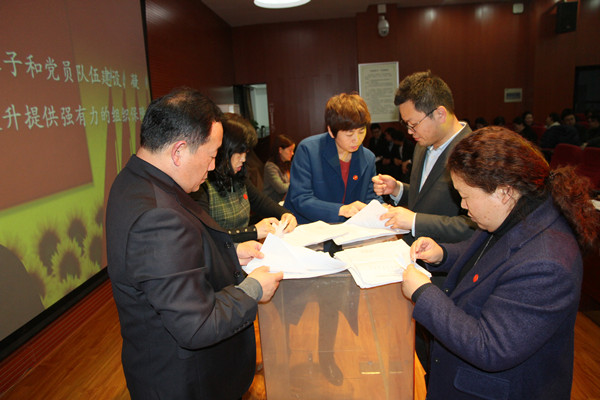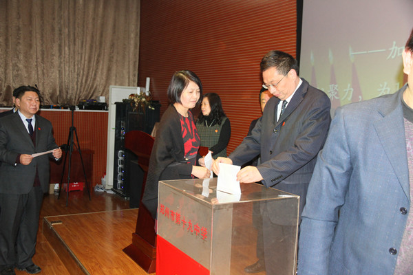 该校党委委员李伏庆同志宣读了《中共郑州市第十九中学委员会换届选举办法》, 党委委员郭中喜同志向与会人员介绍了候选人基本情况。大会审议通过了《中共郑州市第十九中学委员会换届选举办法》和监、计票人名单,全体与会党员采取无记名投票方式,从11名党委委员候选人中通过差额选举产生9名党委委员。