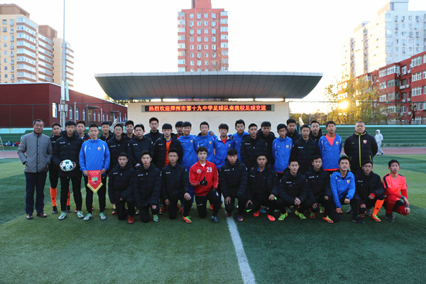 2017年11月14日至15日,郑州十九中接到北京八一学校邀请,该校男子足球队一行20余人前往北京八一学校参加足球友谊赛。两所学校队员们在切磋足球技艺的同时,互相感受两地区的文化差异,共同搭建彼此友谊的桥梁。