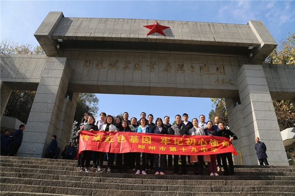 习近平总书记9月份在河南考察时强调,“要讲好党的故事、革命的故事、根据地的故事、英雄和烈士的故事”。为探寻英雄足迹,致敬先锋模范,弘扬革命精神,传承红色基因,郑州市第十九中学各党支部书记及委员在党委副书记孙广兰、纪委书记郭中喜的带领下,于11月14-16日赴信阳新县开展了为期三天的培训学习。