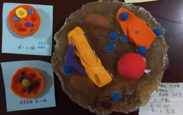 高一学生在学习了细胞结构的基础上,利用生活中的常见材料,发挥自己的想象力,创作出了各种漂亮而又不失科学性的细胞模型。他们积极开动脑筋,纷纷大显身手,展现创意。心思灵动的同学们看中了橡皮泥、面粉柔软易塑的特点,精心制作了各类细胞结构。他们根据细胞各部分结构的特点或捏成不同的形状,或压出浅浅的印痕,或弯成曲折的网状,力求再现各个细胞器的形态特点。许多作品还用不同的颜色区分不同的细胞器,用大头针固定它们的位置和形状,精心细致自不待言。