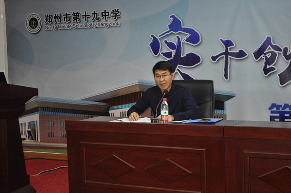 乘着郑州市第十九中学60华诞的春风,为加强班主任之间的沟通与交流,促进青年班主任的快速成长,继续保持教学质量更快速地提升,扩大学校在郑州市的影响力,创郑州市一流名校,使学校向更高层次发展,2016年12月10日郑州市第十九中学第十四届班主任论坛在河南晨明生态园开幕。校长梁寅峰,德育副校长朱玉国、纪委书记郭中喜以及学校中层以上干部和全校班主任参加了开幕式。