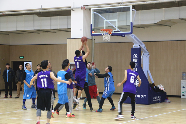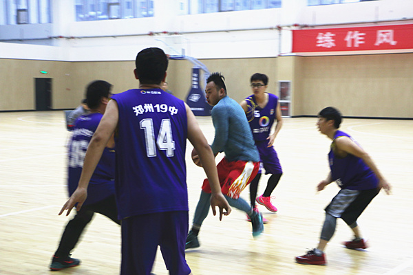 比赛首先由张少亮委员开球,随着一声哨响,比赛正式开始,运动员们迅速进入到激烈的比赛状态,队员们个个激情满怀,在场上你争我夺,一个个背后运球、后转身过人、行进间变相晃人、急停跳投、三大步上篮,夺得场边领导和观众的阵阵掌声,队员们正可谓是雄姿英发,帅气利索。观众们情不自禁掏出手机,为场上队员们拍照、录像,由女老师们组成的啦啦队也不甘示弱,加油呐喊声响彻整个篮球馆。比赛一共进行了4节,双方队员都拼尽全力,第一节郑州19中方队员凭借主场优势一度领先,但市教育局代表队也不甘示弱,在第二节时将比分反超,第三节比分交替上升,在关键的第四节比赛里,距比赛还剩3分钟之时,郑州19中教工队凭借两个漂亮的“2+1”犯规罚球得分,锁定了比赛胜局,最终以34:31的比分赢得了胜利。