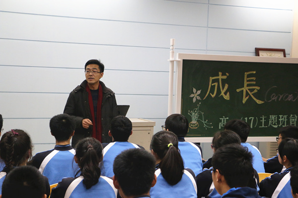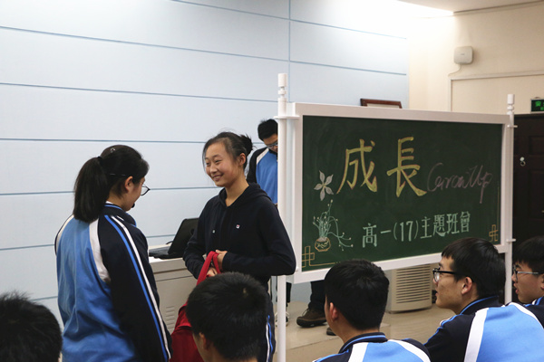 2016年12月26日下午,高一(17)班在大学堂三楼教室举行了以“成长”为主题的班会。本次班会由班委赵浩彤和郑少东主持,我校梁寅峰校长、各中层领导及班主任共同到现场观摩。