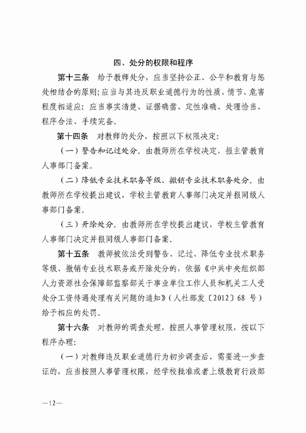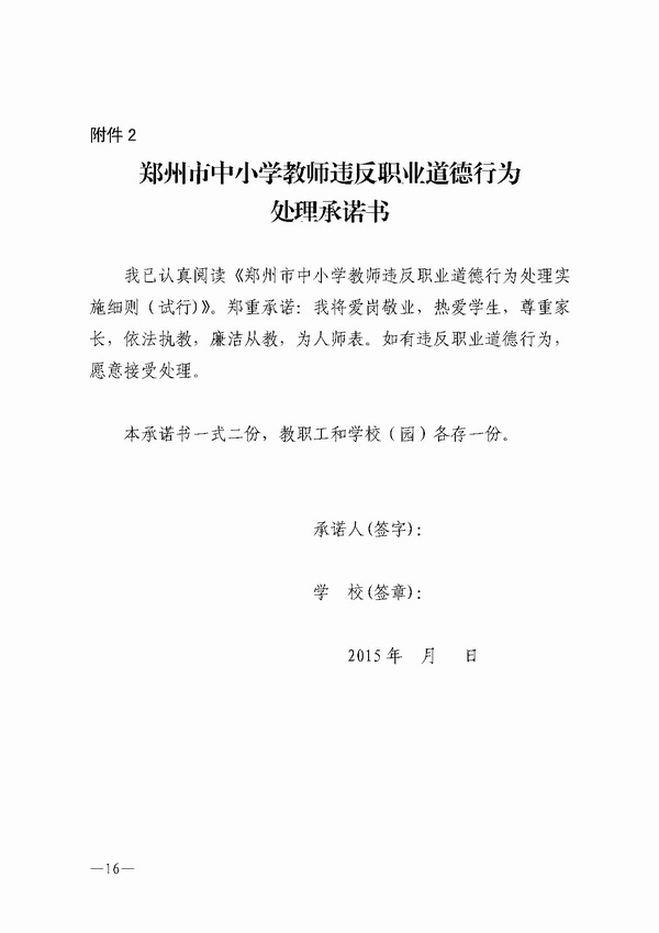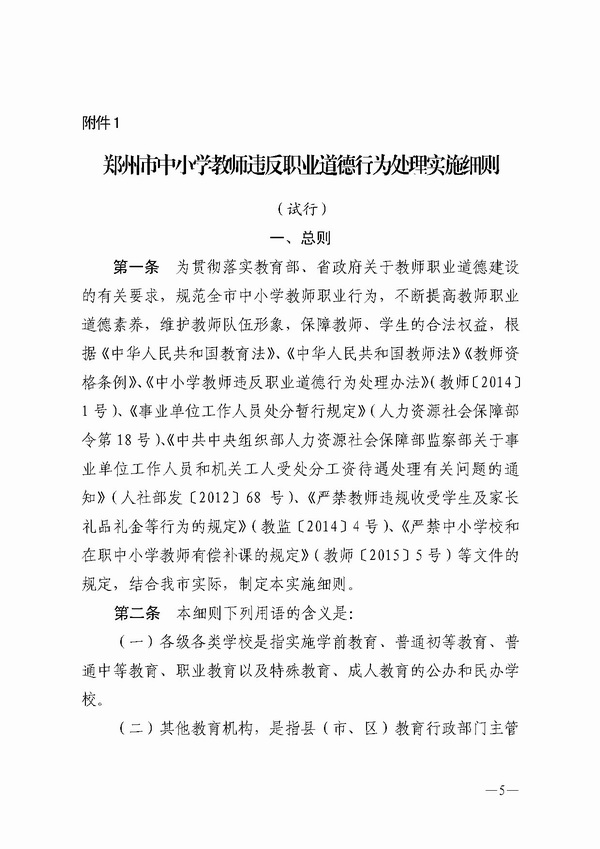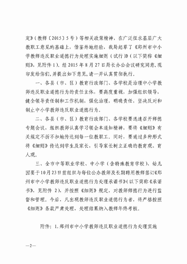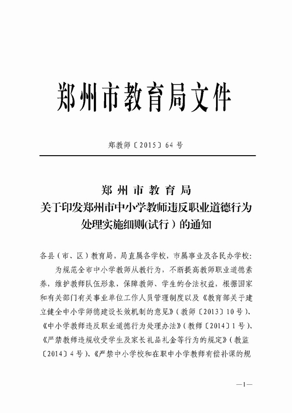 【转载】关于印发郑州市中小学教师违反职业道德行为处理实施细则(试行)的通知