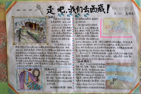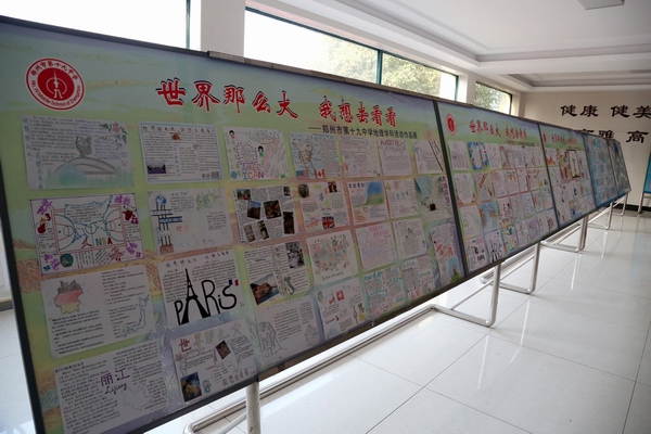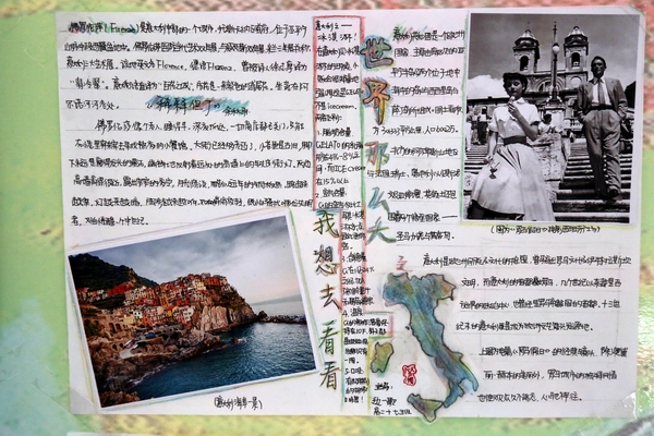 俗话说“读万卷书,不如行万里路,行万里路不如阅览无数”。“世界那么大,我想去看看”,这句网络流行语能够充分的反映出当今人们的心声。该校高二17、18班学子们,把自己心中最美好的地方以手抄报的形式展现给我们大家。有徐志摩曾说胜似天堂的巴黎,有被誉为天使之城的洛杉矶,有美丽少女之称的可可西里,有堪称建筑史上奇迹的比萨斜塔等等,将区域地理与各地的风土人情充分融合,同时避免了学习、生活两张皮的误区。当风格各异的作品集中展现在郑州市第十九中学校园时,我们看到的不再只是一份手抄报,而是世界舞台的缩影,观者无不对画着描绘的一方水土心驰神往,同时加深学子们对地理学科的热爱,更有唤醒青春学子的梦想之深意:“我们正值青春,世界那么大,为什么不能去看看?”