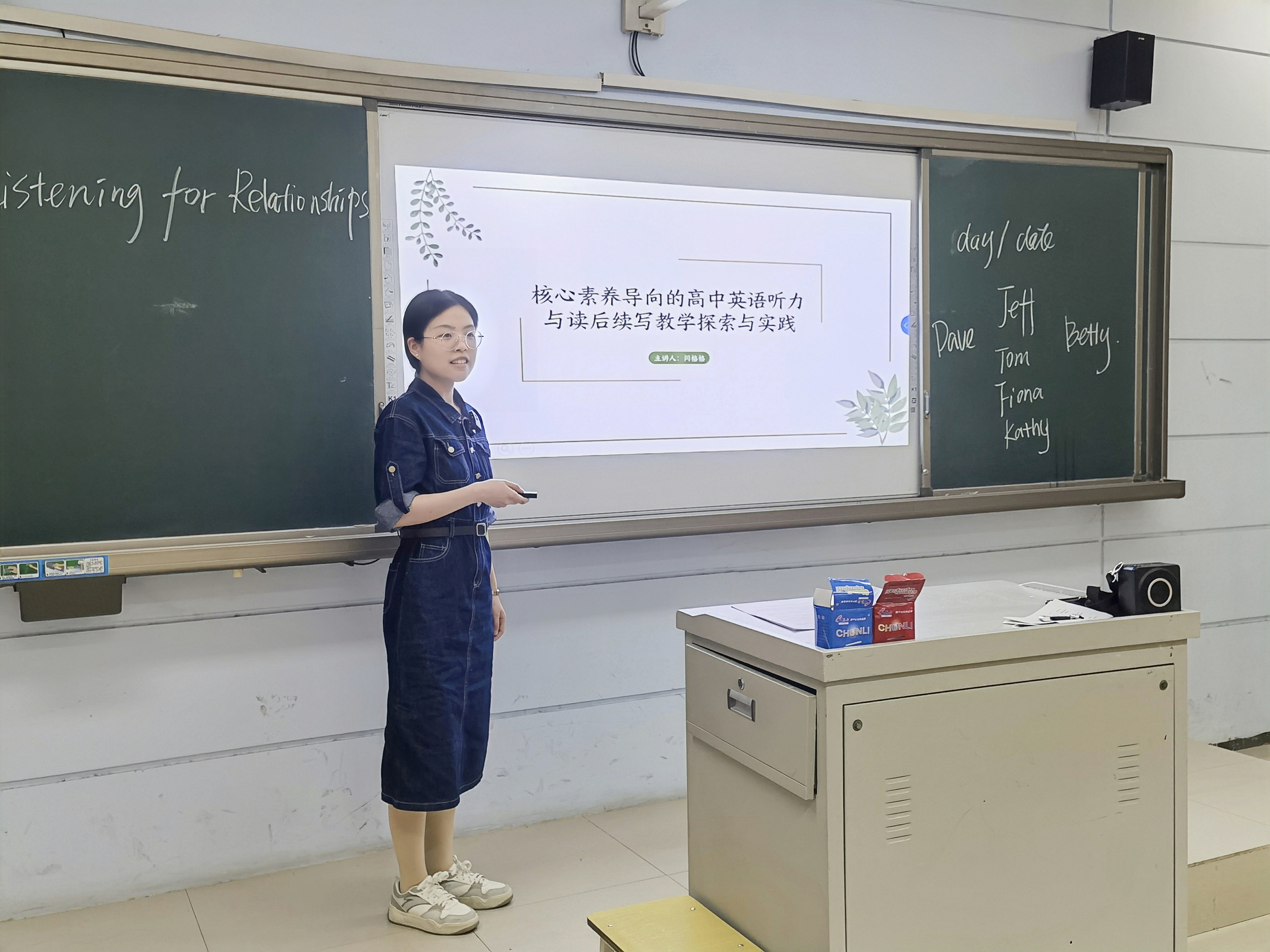 本次活动涵盖课例展示、经验分享和评课研讨三个环节。活动伊始,伟德betvlctor官网入口英语教师王蒙君进行公开课展示,课堂聚焦 Listening for Relationships,提升学生听力中人物关系推断能力。王老师深入研究近年的高考命题趋势,明晰课堂的学习目标,分层设计不同的听力任务,系统讲解如何在听力中推断人物关系。本节课王老师以MBTI性格测试中的J人和P人导入课堂,自然引出为“旅行做准备”这一听力话题。这一巧妙构思,不仅激发了学生的兴趣与求知欲,而且充分调动了学生头脑中已有的经验知识。在文本分析过程中,王老师还通过引导学生捕捉关键词、揣摩对话语气、区分称呼等方法,确定人物的身份和关系,有效提升了学生对听力材料的理解。随后,郑州市龙湖一中闫格格老师围绕核心素养导向下的高中英语听力与读后续写两方面的教学实践这一主题做分享交流。闫老师以《普通高中英语课程标准》中学业质量对听力的要求为出发点,详细论述听力和读后续写课的教学重点,并分享了一系列具体且极具借鉴价值的教学方法,分享内容详实、实用性强,令在场教师收获颇丰。在点评环节,郑州龙湖一中教研组长刘丰玲老师和郑州市第二十四中学教研组长张海中老师,高度赞扬王蒙君老师精妙的课堂设计以及闫格格老师实用的教学策略。伟德betvlctor官网入口英语教研组长付云凤老师从多模态语域场、文化渗透以及未来数字化命题这三个维度,给出了合理且富有前瞻性的建议。郑州一中刘朋宇老师从课堂导入、课堂设计、课堂总结三个方面,进入深入浅出地点评。第一共同体负责人杨永久老师,从“教学评”一体化角度出发,指出本节课学习目标明确,教学环节紧紧围绕学习目标展开,环环相扣、紧凑有序,目标达成度高,值得老师们借鉴。同时,他对闫格格老师的经验分享也给予了高度评价。