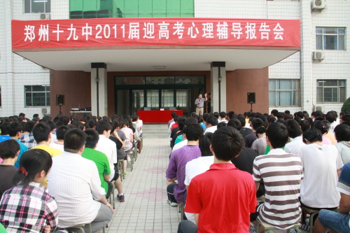 为了让学生拥有积极必胜的心态,教会学生有效进行心理调节,备战高考,2010年5月18日下午,郑州十九中邀请青少年学习心理教育专家、河南省教育厅家教指导中心家教心理咨询室主任、有“家庭气质教育第一人”之称的张健老师,为我校2011届全体高三师生进行了一场精彩、生动、有效的心理辅导报告。